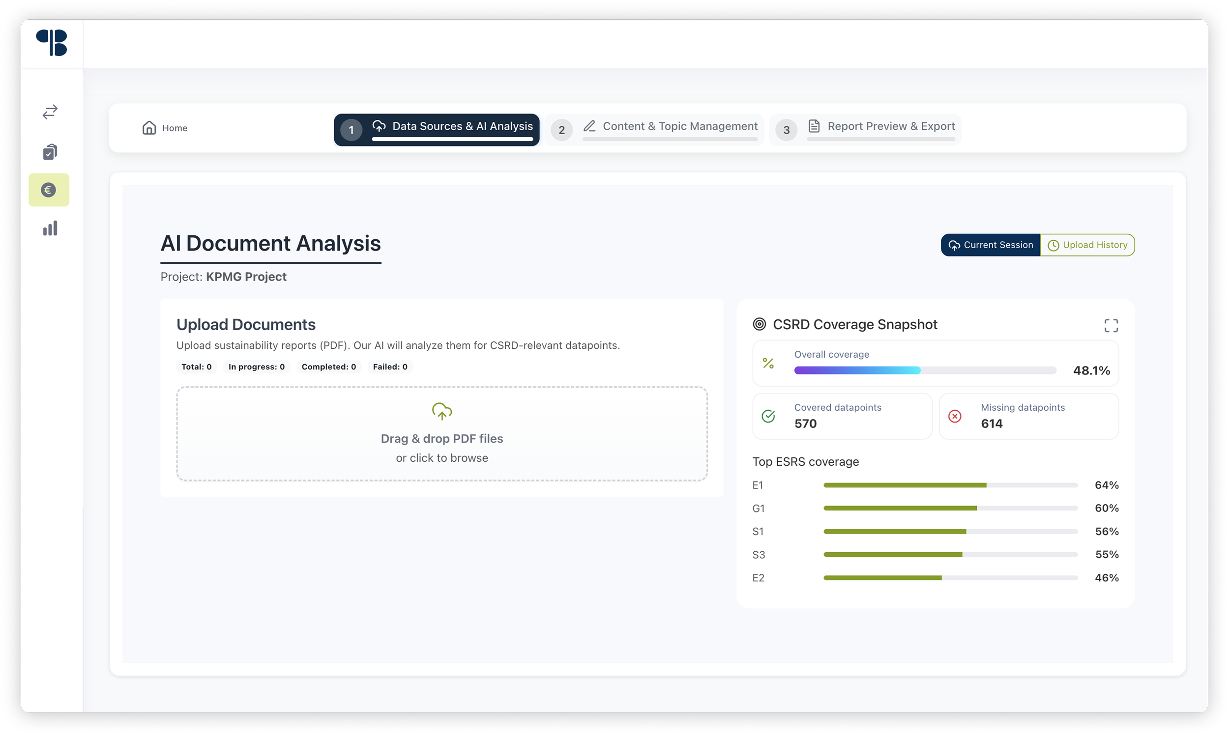 Parabellas künstliche Intelligenz analysiert und gruppiert Ihre Daten entlang der ESRS Kriterien. So kann der CSRD-Bericht schneller erstellt, geprüft und somit bis zu 90% an Zeitersparnis generiert werden.